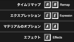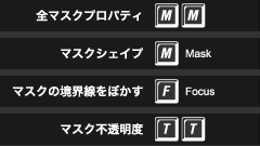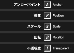 また、不透明度のショートカットキーもエフェクトウインドウの表示のショートカットと重複するため「T」ではなく「O」になっています。 |
