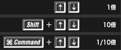 「シフト」と併用することで10倍単位の変更に 「コマンド」と併用することで1/10単位の変更になります。