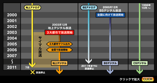 2000年12月にBSデジタル放送が、2003年12月に地上デジタル放送が開始され、