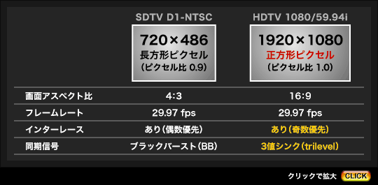 HDに関しては「1080/59.94i方式」 を前提に比較したいと思います。