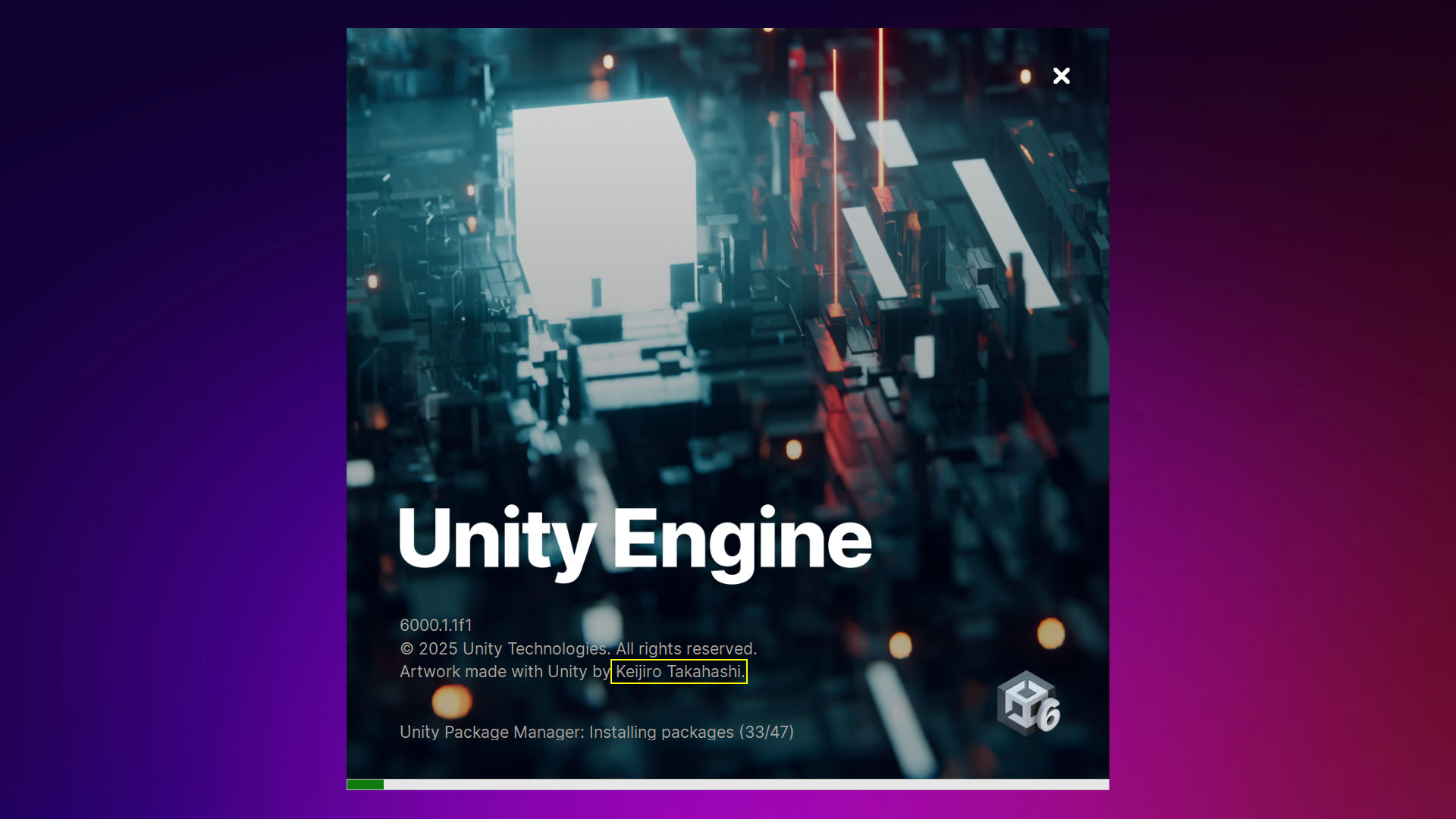 ↑ Unity6 スプラッシュ画面にもkeijiro神の名前が!