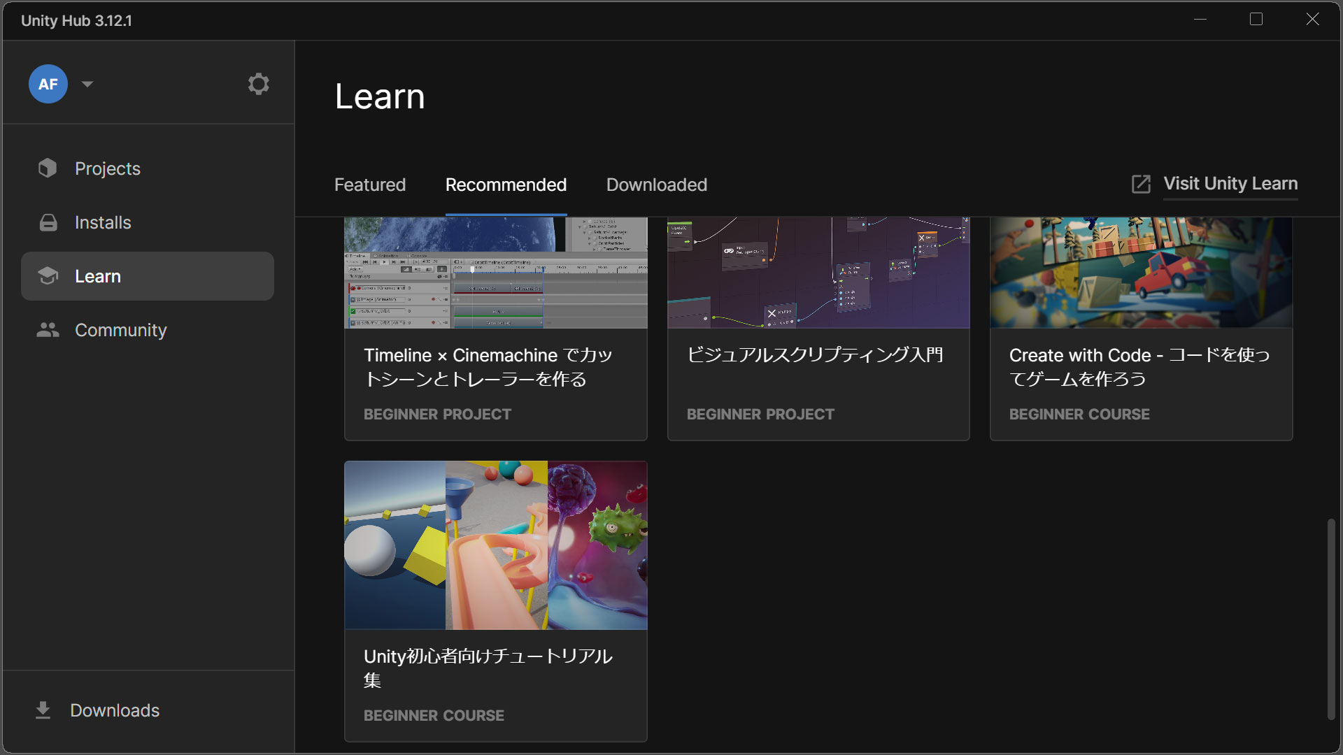 【1】Unity Hubをダウンロード・インストール