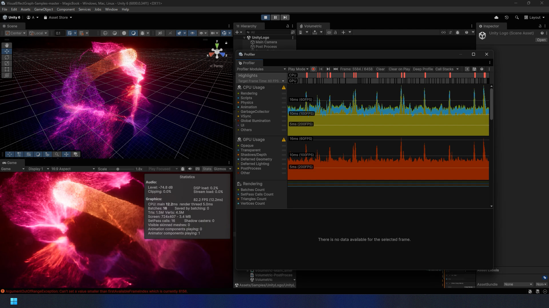 60FPSが安定して出ていない場合、その原因を究明したいところですが、正直なところ ProfilerではVFX-Graphのどの部分でコマ落ちが発生しているかまでは表示してくれないため、シーンが完成した後にProfilerで確認した場合、原因究明に時間を要するかと思います。