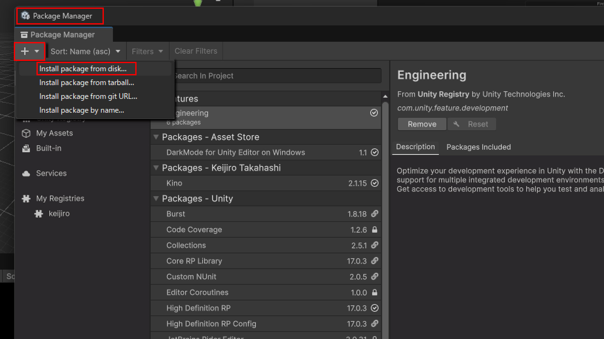 UNITY EditorのWindowsメニュー>Package Manager を起動